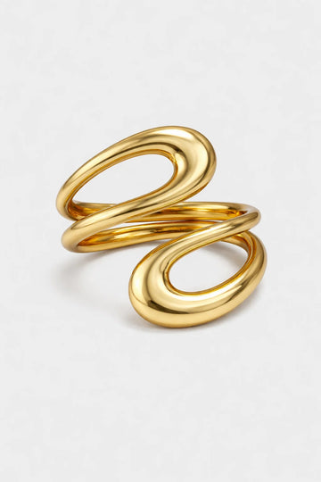 A striking, wide-profile cuff bracelet with a high-shine gold finish. This statement piece features a seamless, rounded design that adds a bold and luxurious touch to any ensemble.